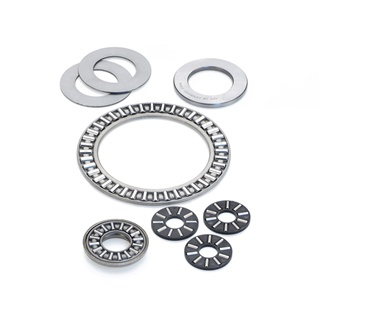 Axiální jehlová ložiska jsou opatřena tvarově stálou klecí pro spolehlivé udržení a vedení velkého počtu jehel. Velmi malé odchylky průměru těchto jehel v jedné sadě umožňuje těmto ložiskům přenášet velká axiální a rázová zatížení. Konce jehel jsou mírně zakřivené pro úpravu styku mezi oběžnými drahami a jehlami. To zabraňuje špičkám napětí na koncích jehel, čímž se prodlužuje provozní trvanlivost ložiska.